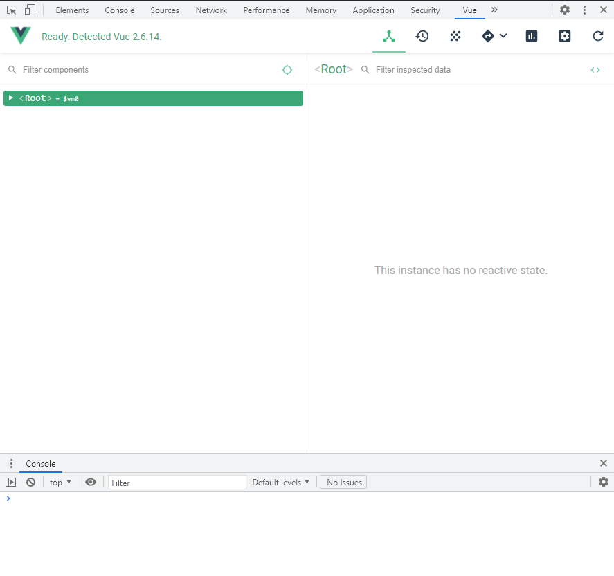 개발자 도구를 열고 Vue탭을 클릭하면 아래와 같은 창을 확인할 수 있다.