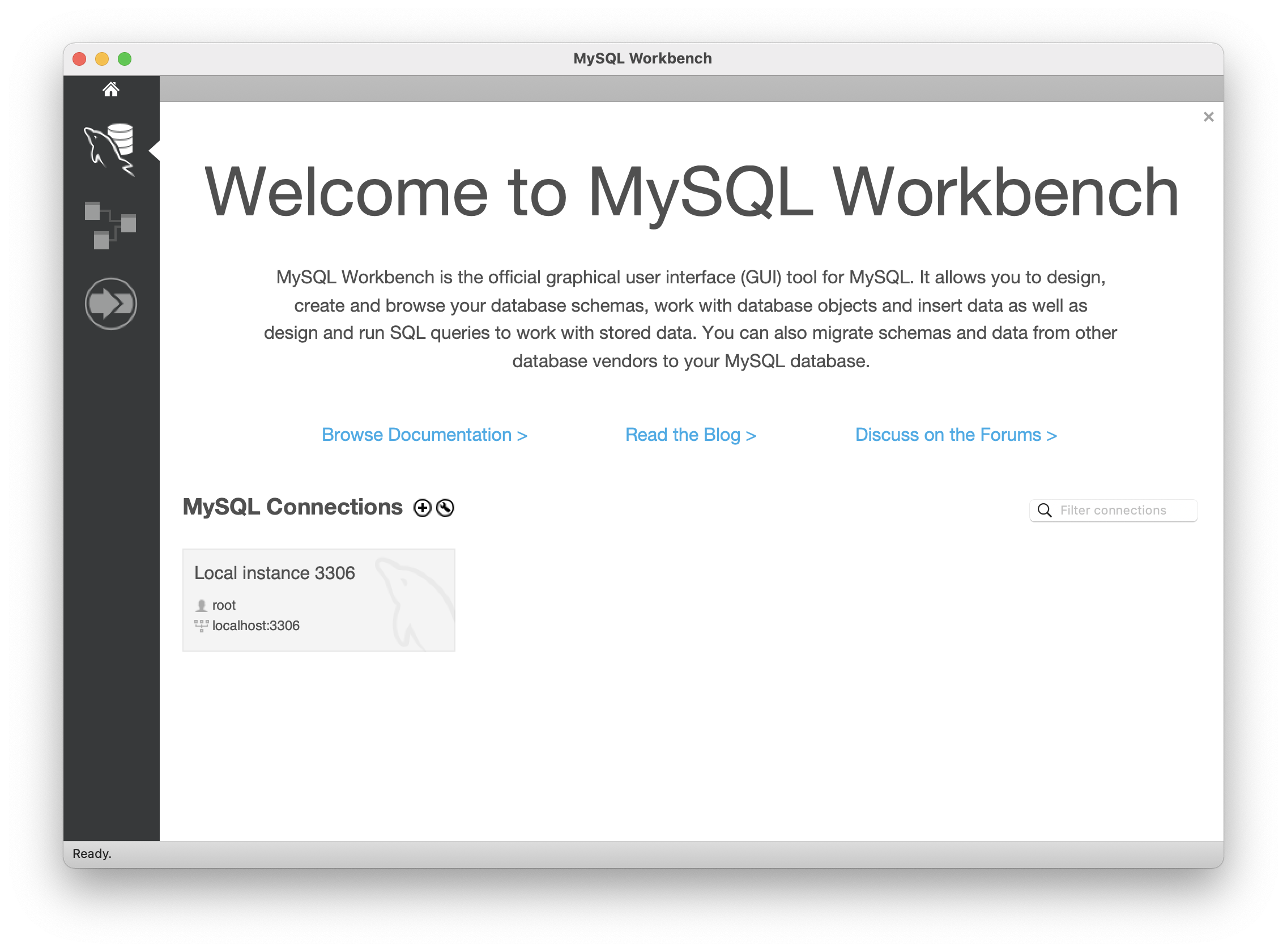 - mysqlworkbench를 설치를 완료했으면 mysqlworkbench를 실행해준다.